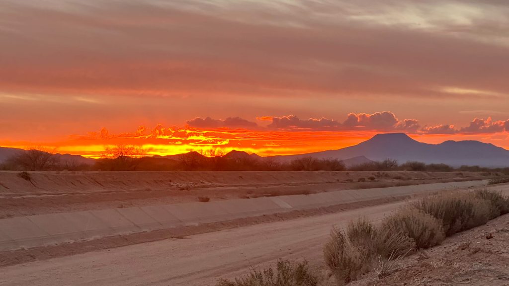 So, we walked an hour passed sunset on the mostly straight, flat canal roads. Eventually, we reached a chunk of state trust land.