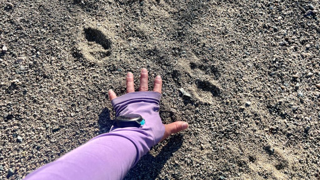 For example, we ended up seeing some mountain lion tracks…probably a juvenile. There was no mistaking the size, the second toe being bigger, and the M-shaped pad. Even more fascinating was when we saw a slightly older coyote print next to the fresher mountain lion print.