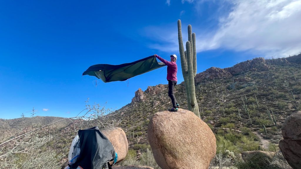 Surprisingly, despite not raining, our tarp was soaked! Like drenched soaked. We guessed it condensed from just how much it rained a few days ago. Luckily, we stayed nice and dry inside the bug net.